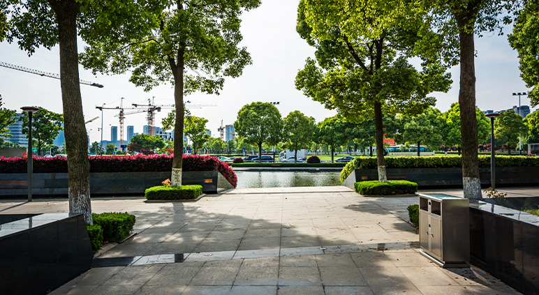 Parc urbain avec pavillon